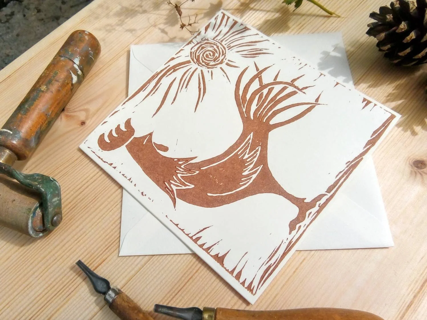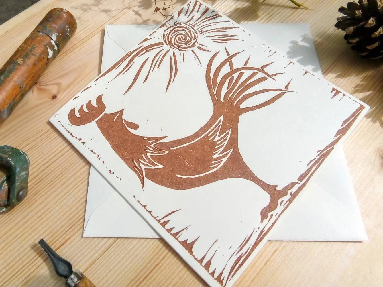 Hand Printed Cards to Spread Joy… And Breathe, Handprinted Card, Lino Print, Yoga Woman £3.50 Tulips Card. Lino Print Card. Green & Orange on Cream . Blank. £3.50 Daffodils Card. Lino Print Card. Green & Yellow on Cream . Blank. £3.50 Snowdrops Card. Lino Print Card. Green on Cream . Blank. £3.50 Hug Card. Lino Print. Red on Cream. Blank £3.50 The Oak In The Acorn Card. Lino Print Card. Green on Cream . Blank. £3.50 4 Swimming Cards. Set of 4 Lino Print Cards. Blue & Cream. Blank. £12.00 Swim Wildly. Lino Print Card. Blue & Cream. Blank. £3.50 Freezing, Handprinted Card, Lino Print, Sea Swimmer £3.50 Come On In Card. Lino Print Card. Blue & Cream. Blank. £3.50 Sea Birds, Handprinted Card, Lino Print, Sea Swimmer £3.50 Oak Leaf & Acorn Card. Lino Print Card. Green, Brown. Blank. £3.50 Cornish Chough Card. Lino Print Card. Blue & Cream. Blank. £3.50 Cornish Puffin Card. Lino Print Card. Blue & Cream. Blank. £3.50 You Choose 4 Seaside Cards . Lino Print Card. Blue & Cream. Blank. £12.00 5 Cornish Seaside Cards. Set of 5 Lino Print Cards. Blue & Cream. Blank. £15.00 9 Cornish Seaside Cards. Set of 9 Lino Print Cards. Blue & Cream. Blank. £25.00 Cornish Crabber Card. Lino Print Card. Blue & Cream. Blank. £3.50 Cornish Tin Mine Card. Lino Print Card. Blue & Cream. Blank. £3.50 Cornish Wave. Lino Print Card. Blue & Cream. Blank. £3.50 Cornish Lighthouse Card. Lino Print Card. Blue & Cream. Blank. £3.50 Cornish Mackerel Card. Lino Print Card. Blue & Cream. Blank. £3.50 Cornish Crab Card. Lino Print Card. Blue & Cream. Blank. £3.50 Cornish Seahorses Card. Lino Print Card. Blue & Cream. Blank. £3.50 Cornish Mermaid Card. Lino Print Card. Blue & Cream. Blank. £3.50 Cornish Seagull Card. Lino Print Card. Blue & Cream. Blank. £3.50 Cornish Lobster Card. Lino Print Card. Blue & Cream. Blank. £3.50 Star Fish Card. Lino Print Card. Blue & Cream. Blank. £3.50 Don't Flap Seagull Card. Lino Print Card. Blue & Cream. Blank. £3.50 Sea Urchin Card. Lino Print Card. Blue & Cream. Blank. £3.50 4 Cornish Animal Cards. Set of 4 Lino Print Cards. Brown & Cream. Blank. £12.00 Wild Brown Hare Card. Lino Print Card. Brown on Cream . Blank. £3.50 Brown Fox Card. Lino Print Card. Brown on Cream . Blank. £3.50 Brown Peacock Card. Lino Print Card. Brown on Cream . Blank. £3.50 Brown Cockerel. Lino Print Card. Brown on Cream . Blank. £3.50 Corn And Flowers. Lino Print Card. Blue & Cream. Blank. £3.50 Bee Happy Card. Lino Print Card. Blue & Cream. Blank. £3.50 Rainbow Card. Lino Print Card. Rainbow on White. Blank. £3.50 Catty Thanks Card. Lino Print Card. Orange & Cream. Blank. £3.50 To The Stars. Lino Print Card. Blue & Cream. Blank. £3.50 Be Hoppy! Lino Print Card. Green & Cream. Blank. £3.50 Thank You Bee Card. Lino Print Card. Green & Cream. Blank. £3.50 Missing You Bee Card. Lino Print Card. Blue & Cream. Blank. £3.50 Daisy Heart Card. Lino Print Card. Red on Cream . Blank. £3.50 I Love Ewe Card. Lino Print Card. Red on Cream . Blank. £3.50 Two Trees Heart Card. Lino Print Card. Red on Cream . Blank. £3.50 4 Heart Cards. Set of 4 Lino Print Cards. Red & Cream. Blank. £12.00 Mistletoe, Yew, Holly, Ivy. Set of 4 Christmas Cards, Blank. £12.00 Mistletoe Christmas Card, Lino Print Card, Blank. £3.50 Yew Christmas Card, Lino Print Card, Blank. £3.50 Ivy Christmas Card, Lino Print Card, Blank. £3.50 Holly Christmas Card, Lino Print Card, Blank. £3.50 Christmas Sheep, Lino Print Card, Blank. £3.50 Christmas Chicken, Lino Print Card, Blank. £3.50 Christmas Fox, Lino Print Card, Blank. £3.50 Christmas Wild Blue Hare, Lino Print Card, Blank. £3.50 Set of 4 Cornish Christmas Cards, Animals In Santa Hat. Blank. £12.00 Christmas Tree Card, Lino Print Card,Green & Cream. Blank. £3.50 Christmas Star Card, Lino Print Card, Red & Cream. Blank. £3.50 Christmas Peace Dove Card, Lino Print Card, Green & Cream. Blank. £3.50 Christmas Snowflake Card, Lino Print Card, Red & Cream. Blank. £3.50 Set of 4 Cornish Christmas Cards, Lino Print Card, Red, Green & Cream. Blank. £12.00